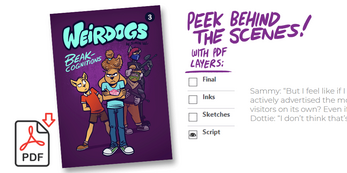 - PDF layers that let you see how the comic evolves from script, to thumbnails, to sketches, to inks, and to the final pages